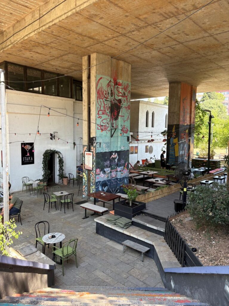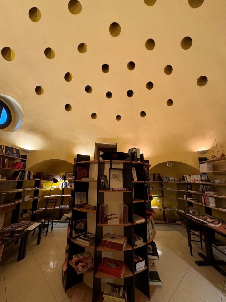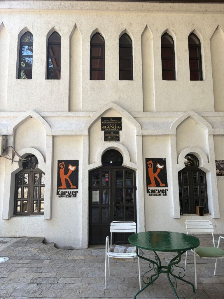 Located at an underpass at the Ribnica River, the building used to be a Turkish bathhouse used during the Ottoman Era. Today it has been repurposed in to a bookstore on one side and a café/bar on the other.