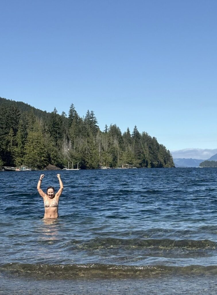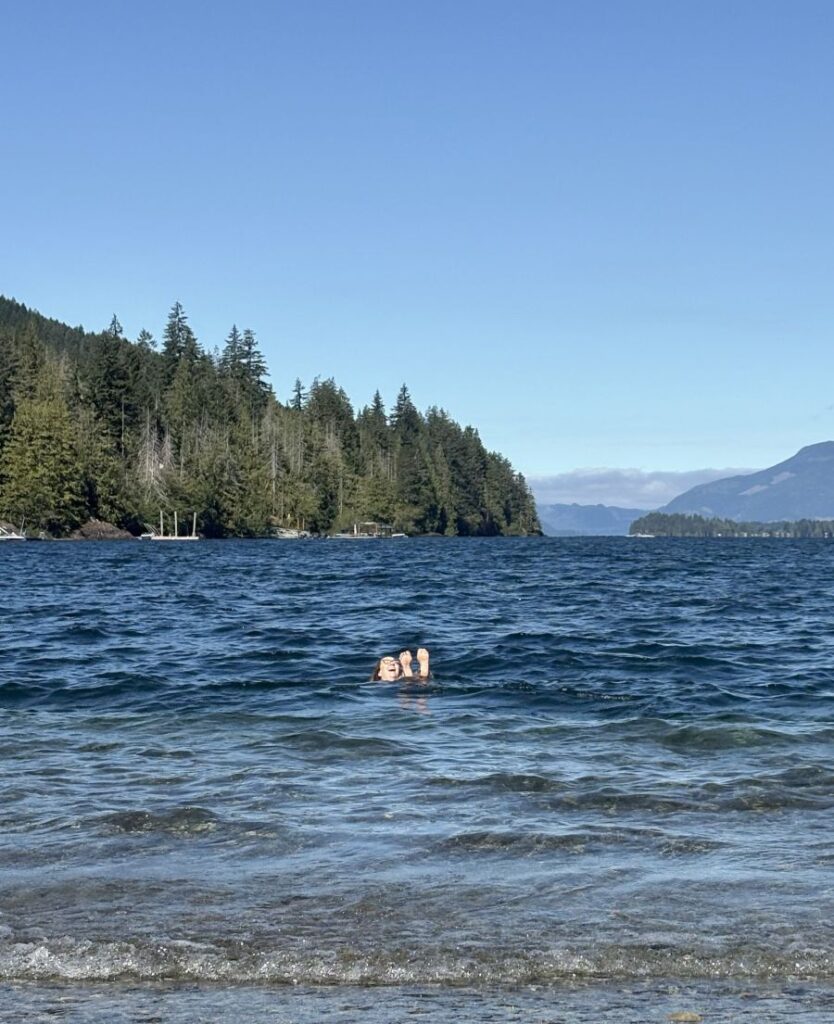 Of course! I get up the gumption and head into that dreamy clear abyss. Not one for a cold-water swim, it takes me a little while to submerge. But when I do, it is complete bliss! I’m so proud of myself for getting in and paddling around.