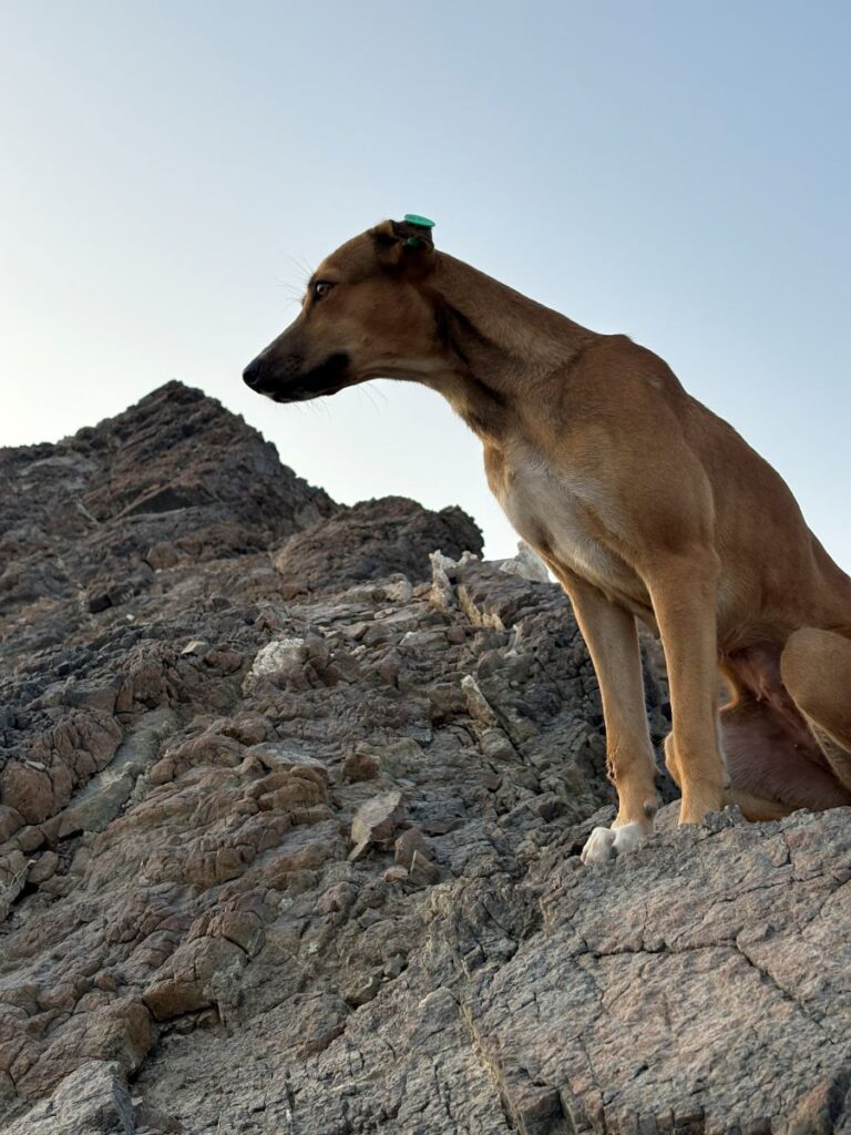 Off we set, up the initial incline, a set of steep stone stairs. This portion lasts for perhaps fifteen minutes or so and can be quite taxing on the legs. There are two shaded rest areas should you need them. It was here that we were joined by a single wild female dog, who stuck by our side like glue, for the entire trek.