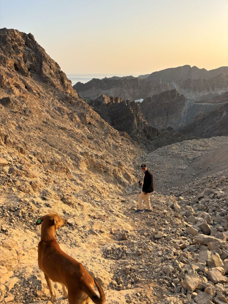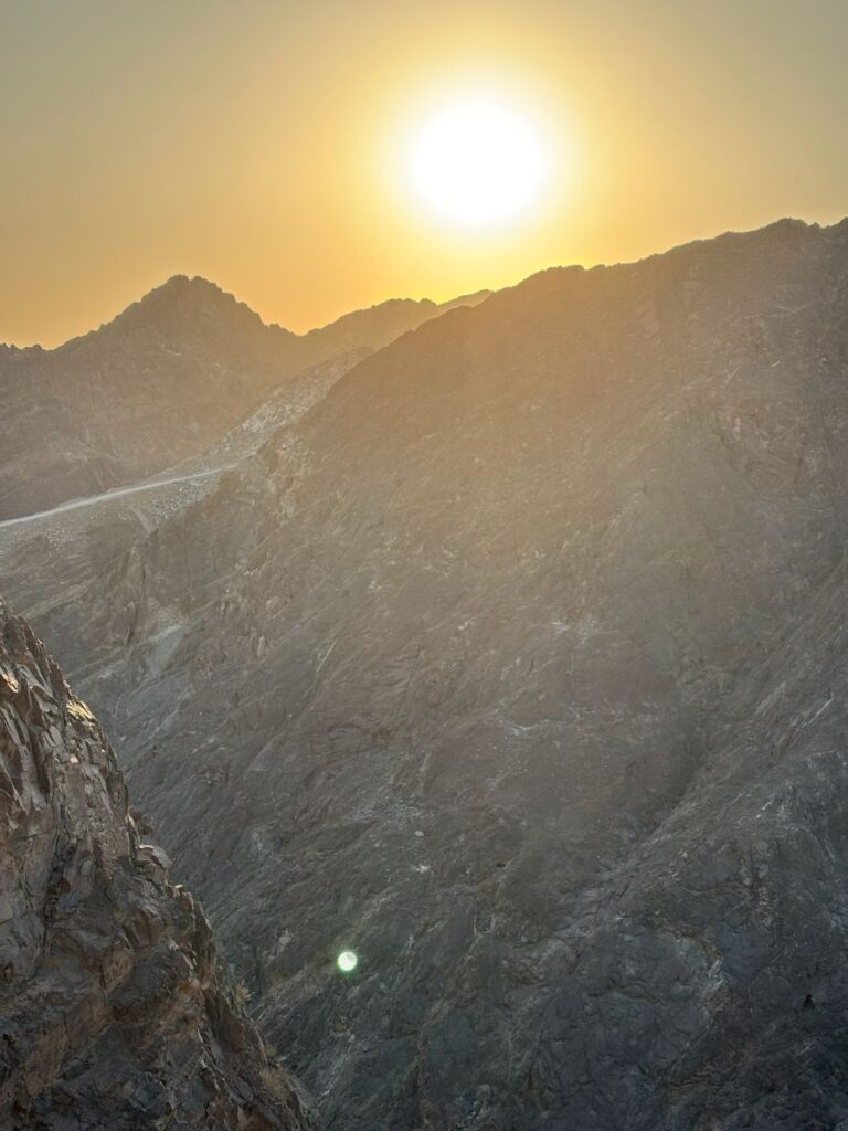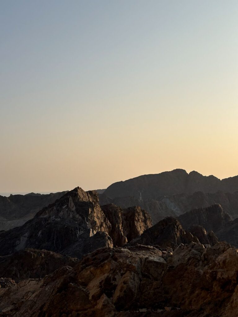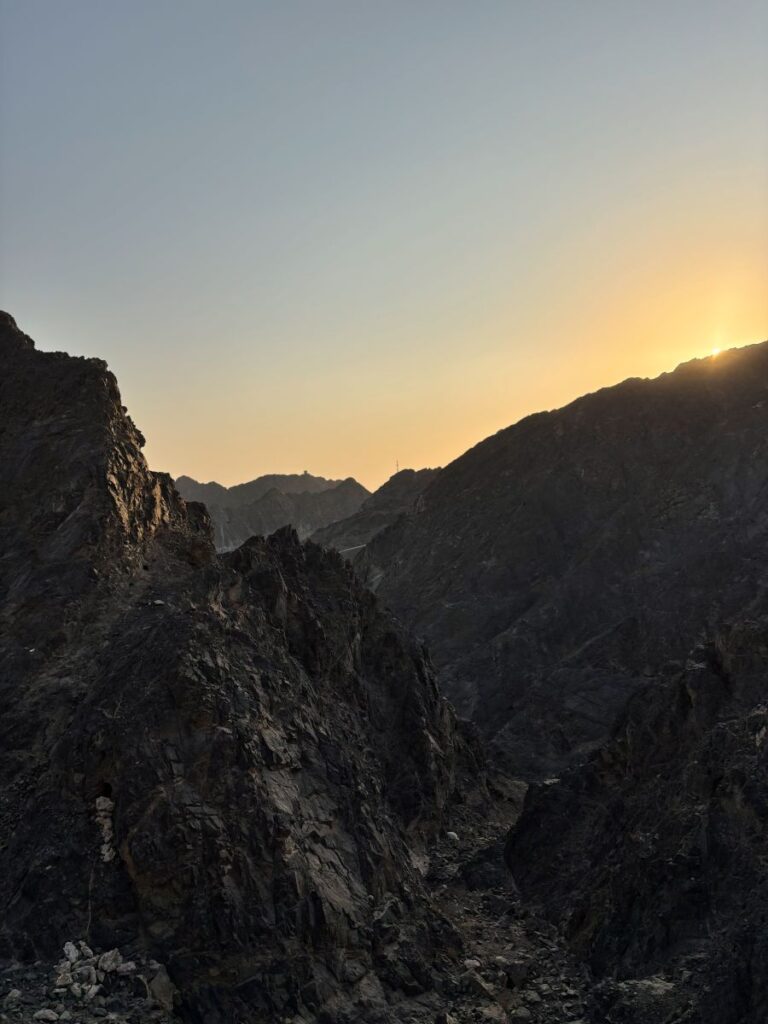As mentioned previously, the views from this upper realm are intense. The orb of the golden Arabian sun cresting these rugged Hajar Mountains is a breathtaking sight indeed and one I will remember for a long time. Looking in every direction offers one a sense and scene of awe. From the barren and raw beauty of these rock formations, to the manicured corniche and harbour with its luxury yachts.