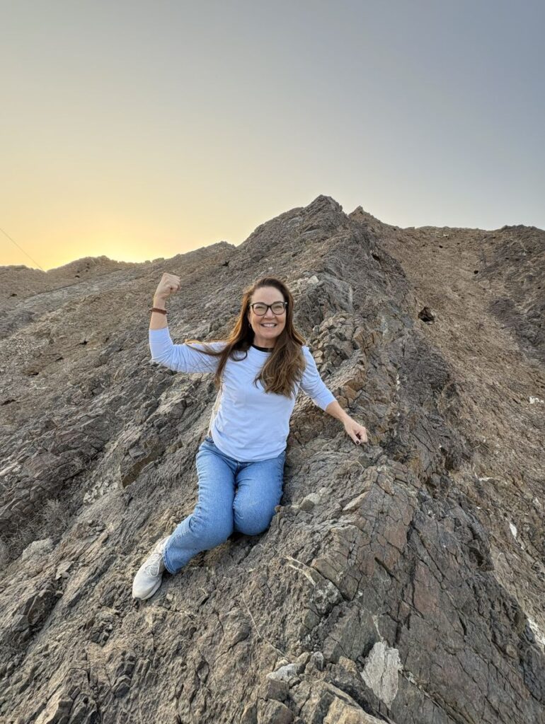 Now we were by no means at the top of the highest peak, but we did reach an apex and sat to have photos and high five each other. With legs feeling fatigued and thirsty as heck, the small bottles of water we had brought with us were a blessing. In this photo, it is difficult to tell, but I am sitting on the right side of a precipice. If I reach out my left hand, I can crumble that rock and push it over the edge. To say I felt like a mountain goat is the correct verbiage. 🐐
