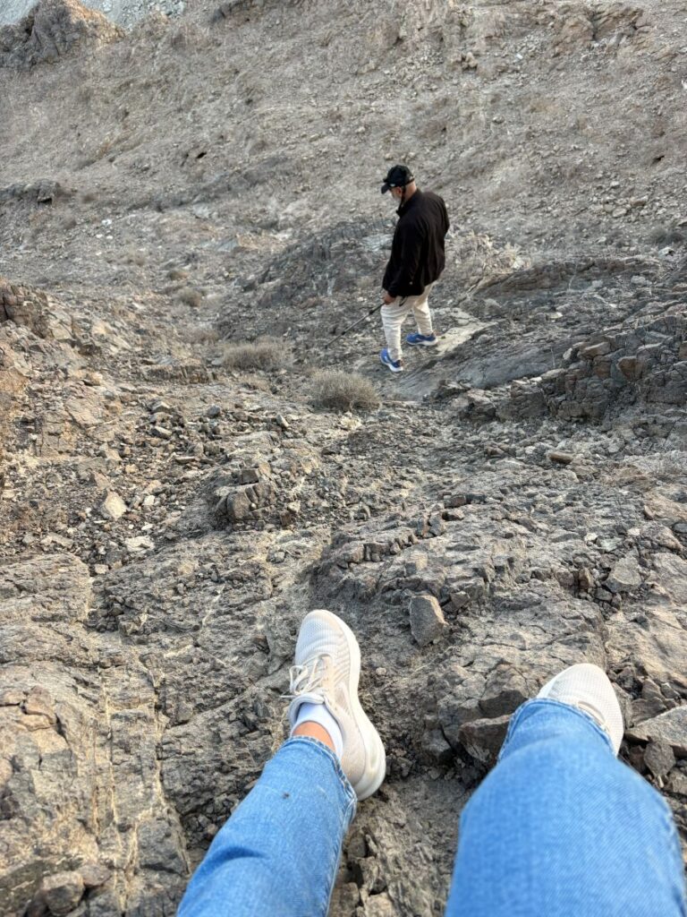 At this time of year, there is hardly a green leaf in sight. Completely arid and not a speck of moisture is found. We slowly make our descent, some of which I will admit was a scramble down on my butt. 😂