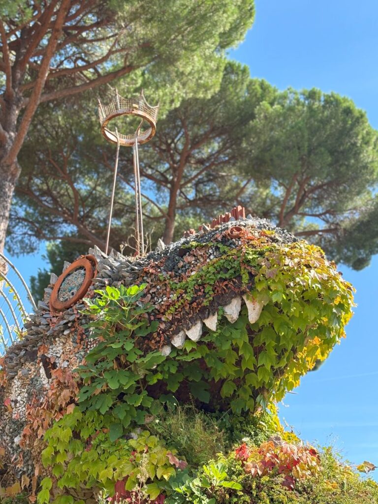 Not done quite yet, cross the train tracks and head up the incline behind the garden. You will now be in another garden space called Sculpture of the Dragon! The vista at the top is stunning, with that glass greenhouse in the park below.