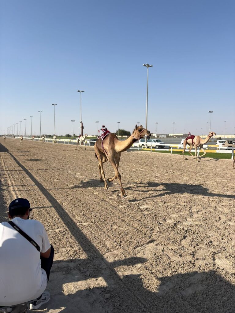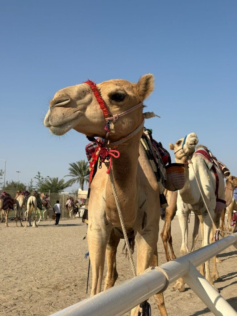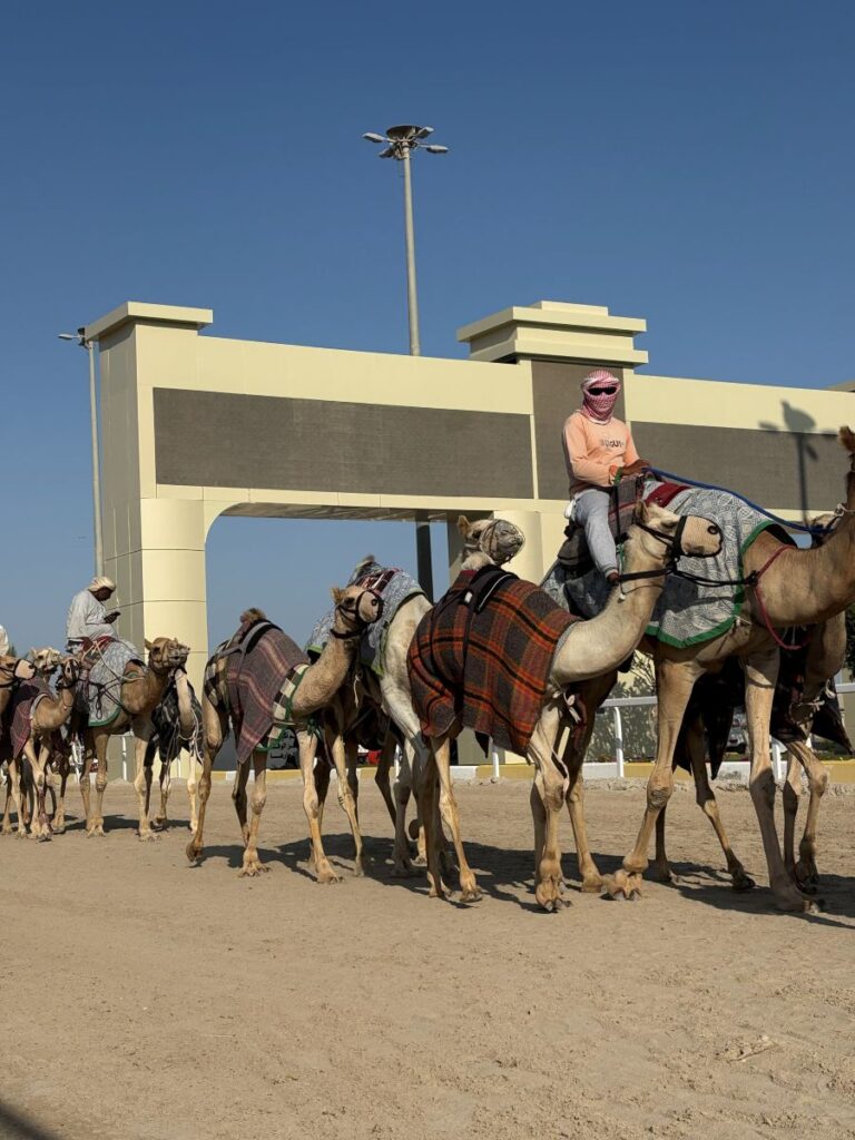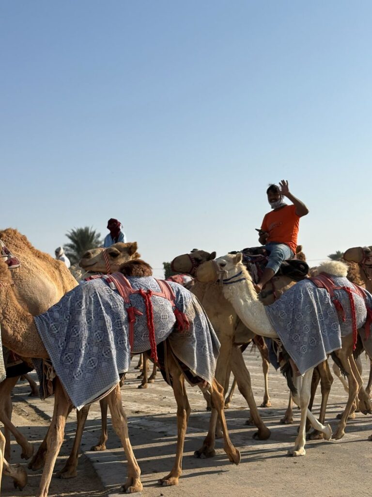 After spending a few hours up at the track and in a state of complete bewilderment and stimulation, I make my way back to the main road to await my Uber. While there, it is now around 4:30pm, camels are being brought from their stables towards the tracks in droves. Camel trains. Massive columns of the animals cross the road, blocking traffic for several minutes at a time. It is a gorgeous sight to see, and a beautiful ending to a perfect day of culture, excitement, interaction and the most unique experience for me.