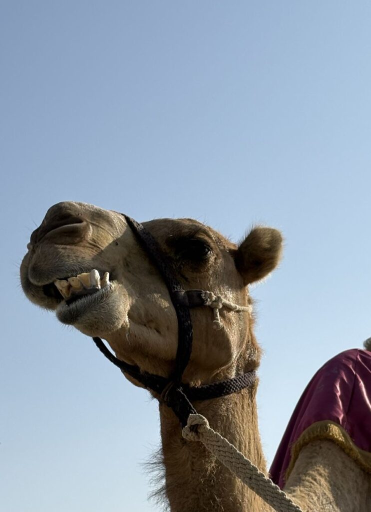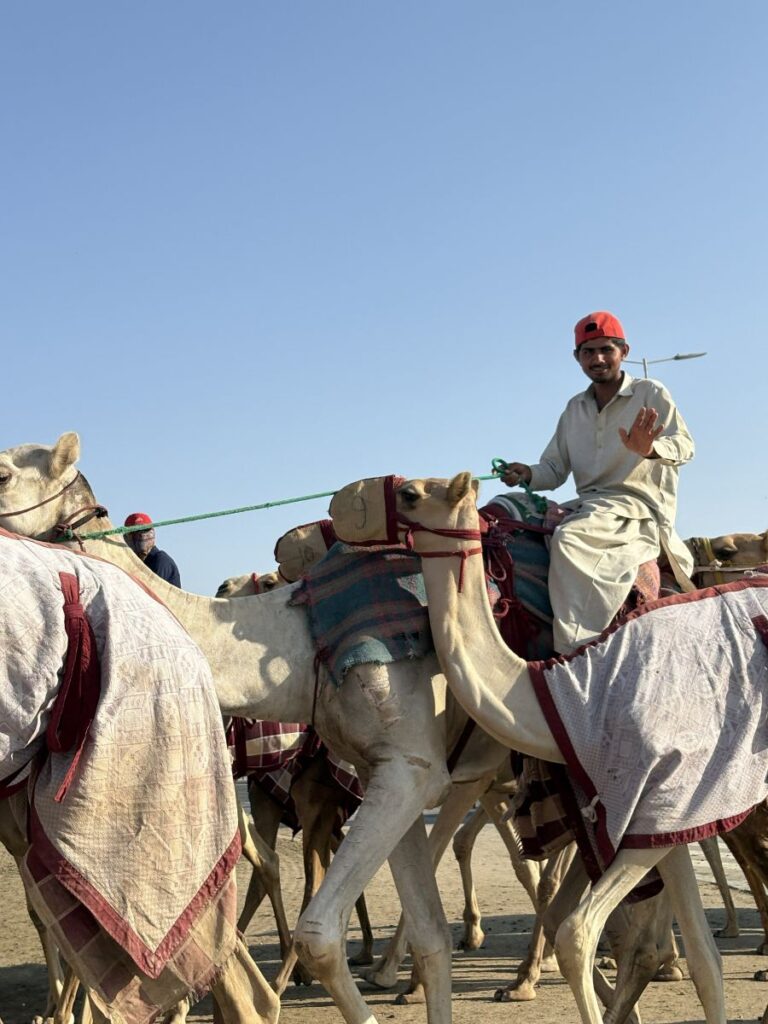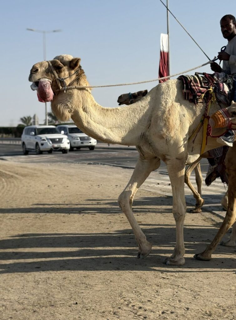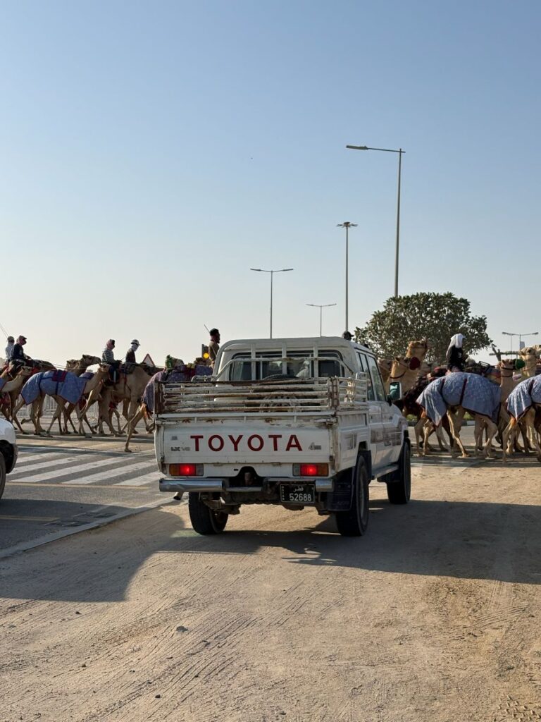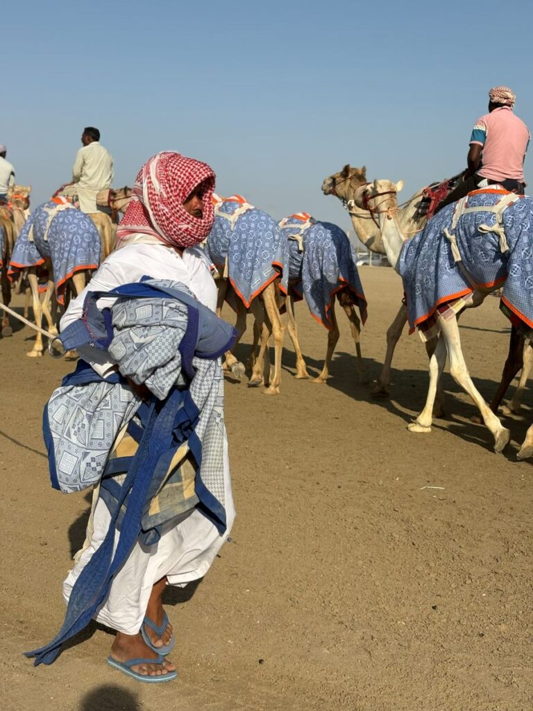 After spending a few hours up at the track and in a state of complete bewilderment and stimulation, I make my way back to the main road to await my Uber. While there, it is now around 4:30pm, camels are being brought from their stables towards the tracks in droves. Camel trains. Massive columns of the animals cross the road, blocking traffic for several minutes at a time. It is a gorgeous sight to see, and a beautiful ending to a perfect day of culture, excitement, interaction and the most unique experience for me.