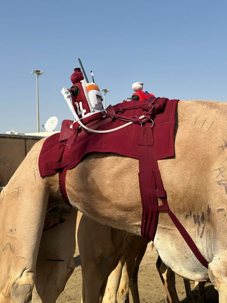 A curious feature of the Doha camel races are the robots that are perched on the backs of the animals. Up until 2005 the jockeys were human, and often children. After international backlash, the jockey position was given over to these little robots who even sport a head. When the camel is running, the robot continually swings an arm providing a repeated whack on the backside to keep the camel moving.