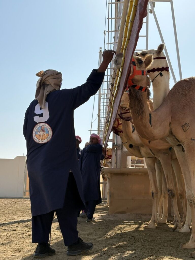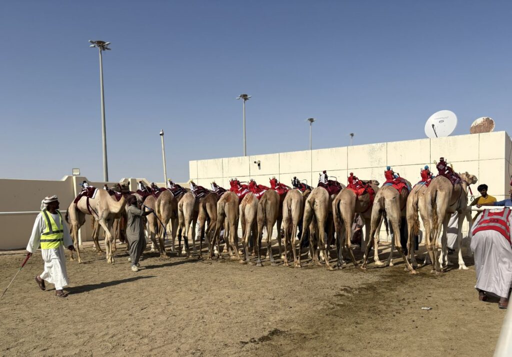 At Al Shahaniyah there are three racetracks, an 8km, 4km and 2km. All are loops. The 8km track is the one closest to the grandstand finish line and the start line is just across the road. Beside the start line, is the staging areas, and these are full of camels, their handlers and officials.