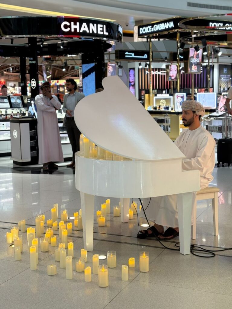 Taking my last Otaxi ride, the most affordable way to navigate the city besides public transport, I arrive at Muscat International Airport. I am able to drop my bag off early so I can enter the secure area, relax and enjoy the shopping and lounge. As with everything I have discovered in Muscat, the airport continues to reflect the classy and upscale aesthetics without being garish. A piano player fills the air with the soft and pleasant sounds while shoppers slowly meander. There is no rush here, no one running, no one sleeping on the floors.