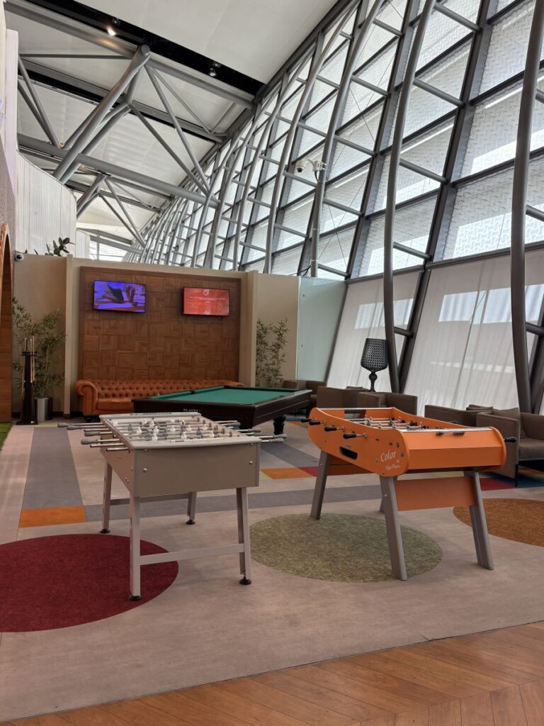 Instead, I use by Dragonpass, pay $32 and enter the lounge. Walking around this vast space there are many seating options, areas and vistas. A game room, sports room, bar area, showers and quiet room are but a few of the amenities to find here.
