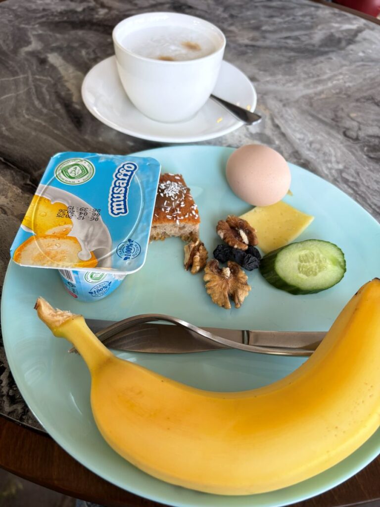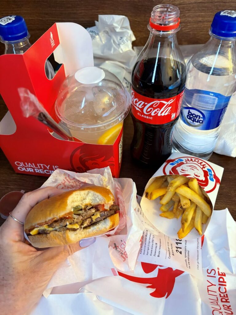The buffet is meager and I select a few things. I am so completely dehydrated all I really want is something to drink. After about half an hour my room has been prepared. Upstairs I head and am so grateful to have finally arrived. I won’t say any more about the day except that it included mostly rest and a YandexGo delivery order from Wendy’s. I got a double burger, coke zero, two sparkling waters, one fries and one fresh lemonade for under $10 CAD!!