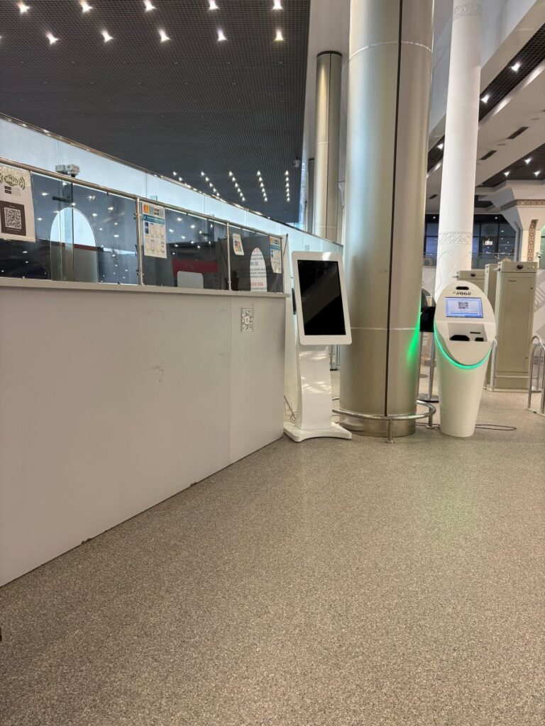 My research has told me that I should use the YandexGo app for rides in Uzbekistan. It works just like Uber. My plan had been to book the ride once outside. That was a disaster so now I have found a vacant seat and am trying to book a ride to my hotel. A man approaches, holding out his lanyard and looking official. He says he is here to help me, a tourist helper. But all he really is, is another one of these taxi piranhas trying to get me to pay him. I ask him how much and he quotes me 250,000 som ($28 CAD). I tell him no but he won’t go away so I ignore him.