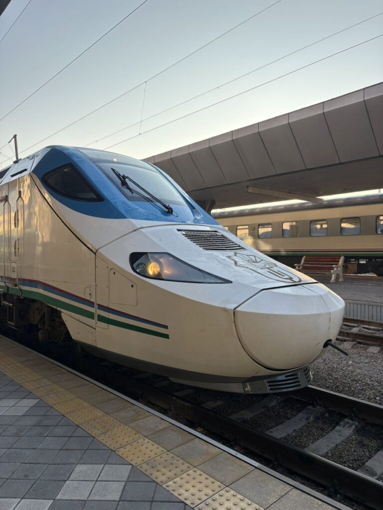 The next morning, I am out the door, too early for the little buffet breakfast. I had booked this train ticket as soon as it became available on the Uzbek Railway site two months ago. That’s how busy these trains are getting; one must book right away.