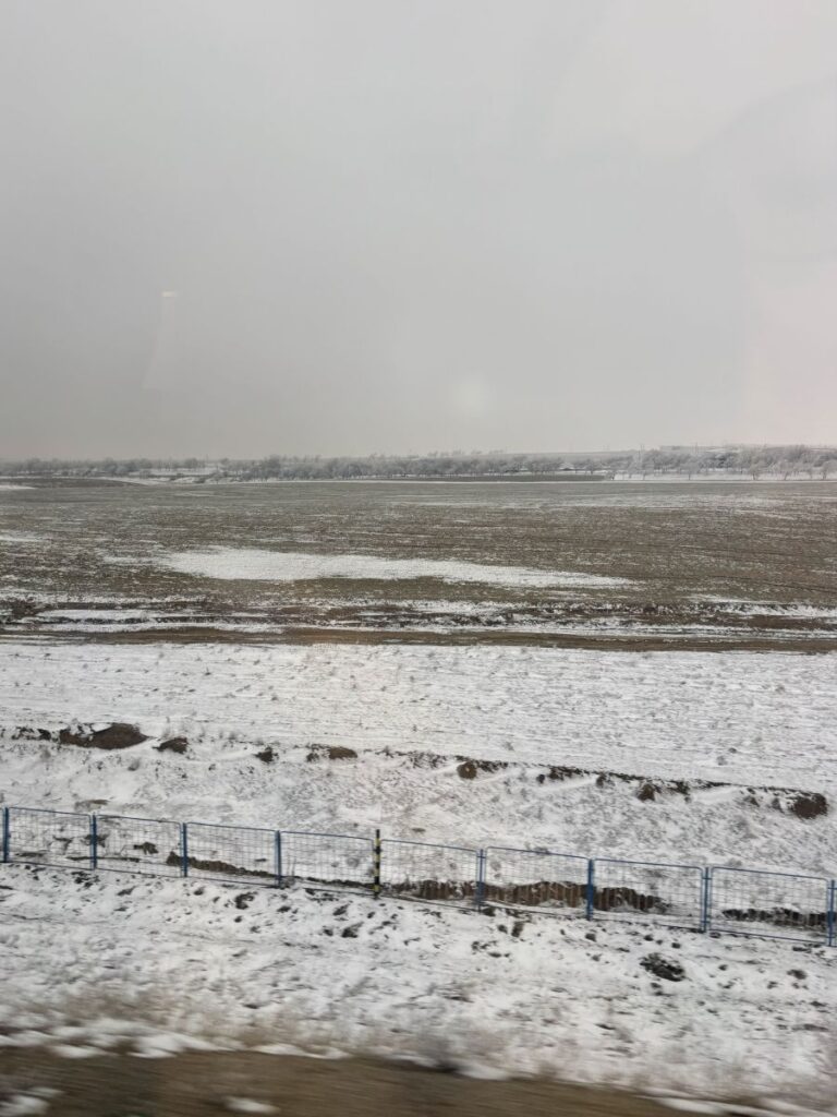 Its absolutely freezing -6 degrees Celsius again. As we rocket along the Uzbek countryside at up to 250km per hour we pass patches of snow laden ground and frozen trees. Through rolling hills but mostly flat pastoral and agricultural land I travel. The ride is 2 hours and 20 minutes long and before I know it, I have arrived in Samarkand.