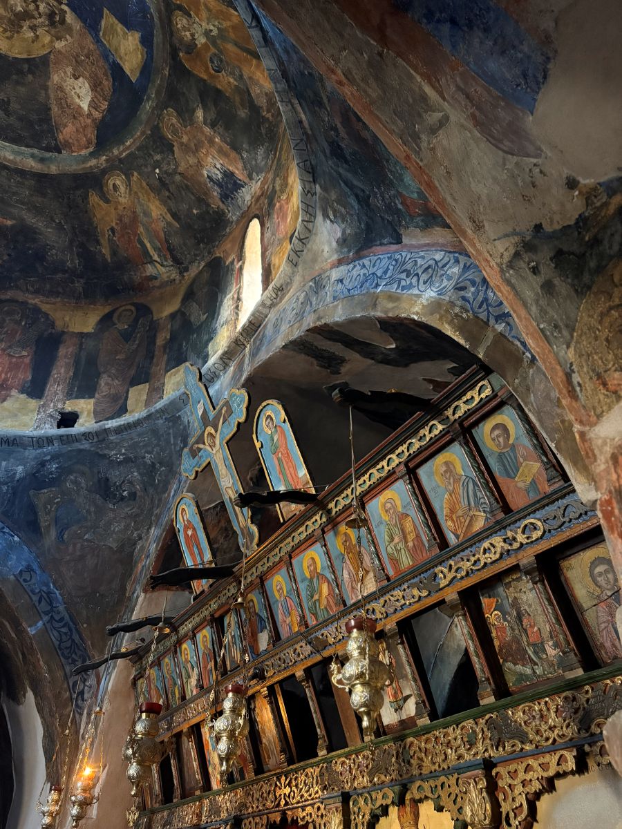 Stunning old frescoes adorn the walls, some dating from the original construction. Others are layered over the old ones and are from the late Middle Ages. They are absolutely amazing to see as are the numerous icons and oddities adorning the altar.