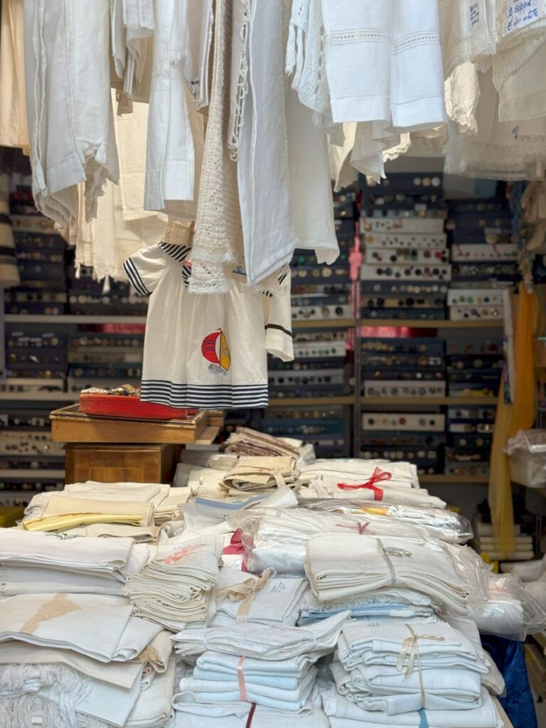 I walk through, admiring every single stall, each one showcasing beautiful pieces of Italy’s past. From old dusty paintings, to furniture, vintage linens and sewing notions.