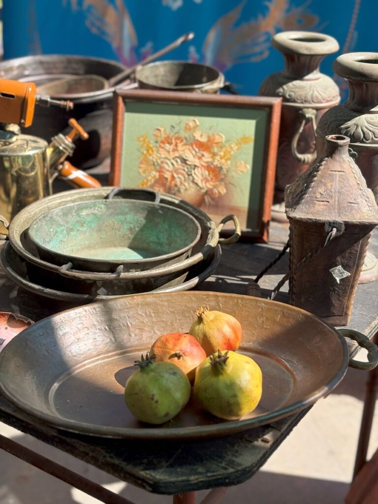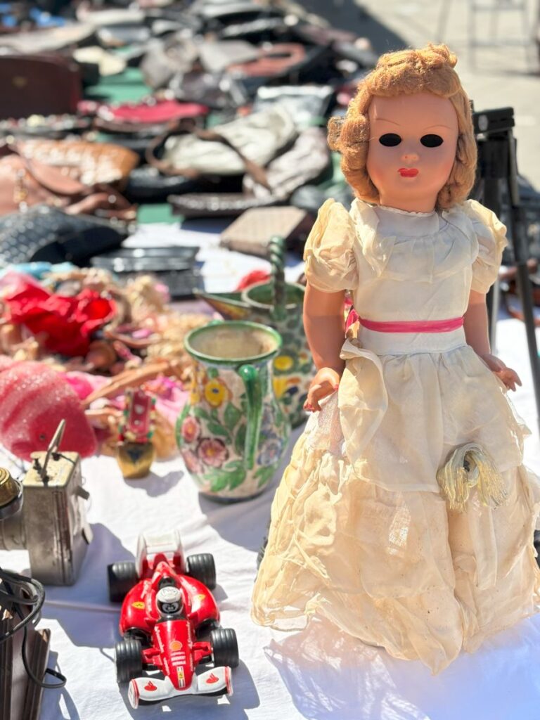 Wander to the outskirts of the fresh outdoor food section, and look for a courtyard with a series of canopies. You have found the flea market! I love a good peruse around this type of affair. One never knows what they will see or find.