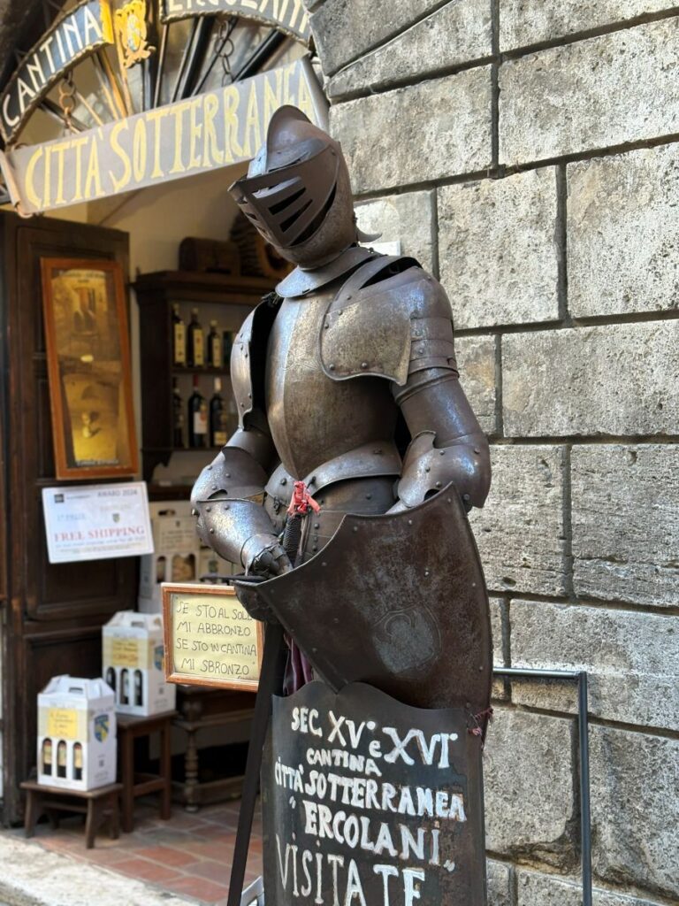 Visitors won’t be able to miss the entrance to this establishment as there is a full-sized medieval knight standing guard at the entrance. This is the Ercolani wine cellar. Enter from the street and descend into the abyss. Full of dark passageways, the curious can wander from room to room, for free.
