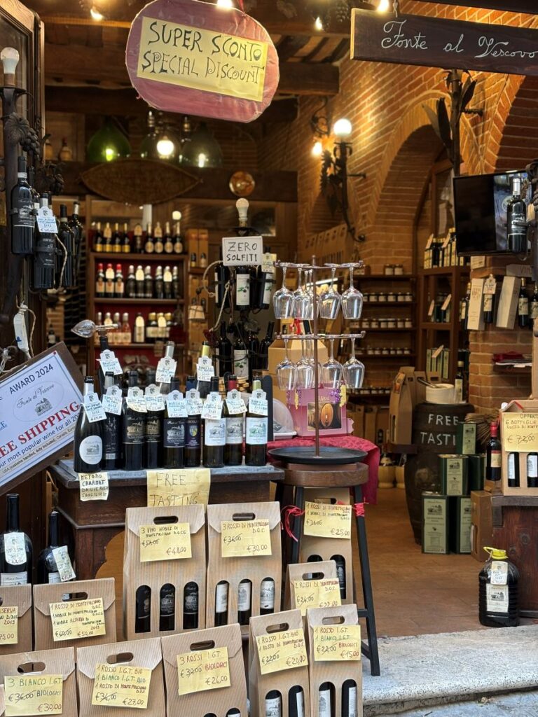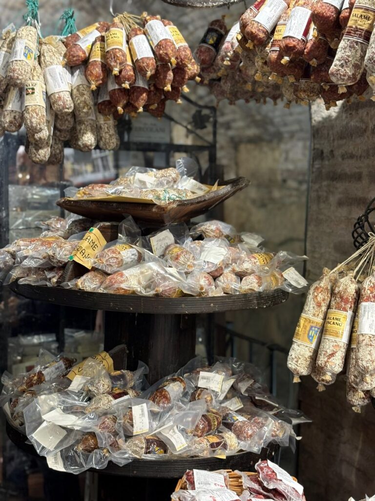 Of course, there are much greater complexities and nuances, but that gives some very basic idea of the differences. And just like the Contucci cellars, it is expected that once you have accepted the tasting and time spent, a purchase is made. For this budget traveller, that was the €8 bottle. 😂 Not a drinker? There are a myriad of other products ranging from all sorts of local cheeses, Tuscan meats, olive oils, fruit cakes and more.