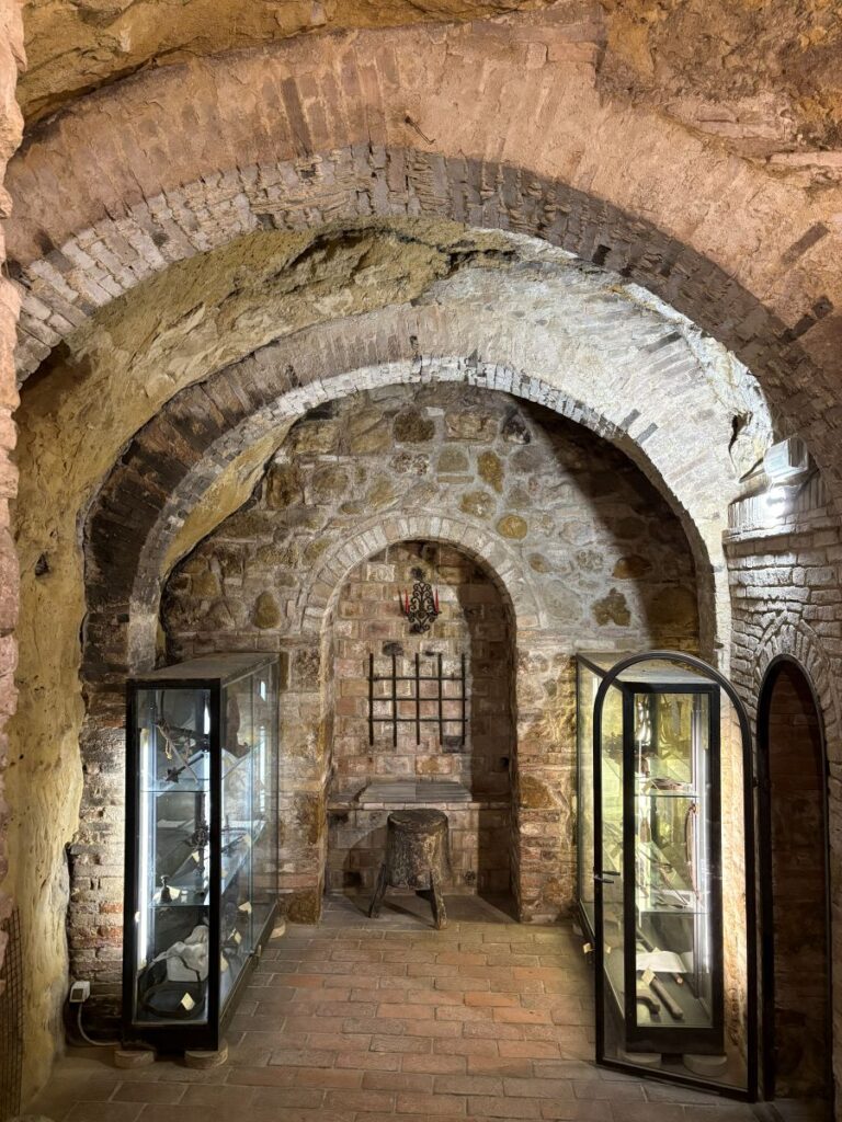 These cellars served many purposes. They connected the palaces above and provided refuge for the people during times of turmoil. This is where olives were pressed to produce oil and where wool was bathed and carded to create yarn. It is also where noblemen met to make secret plans and where the torture rooms are located.