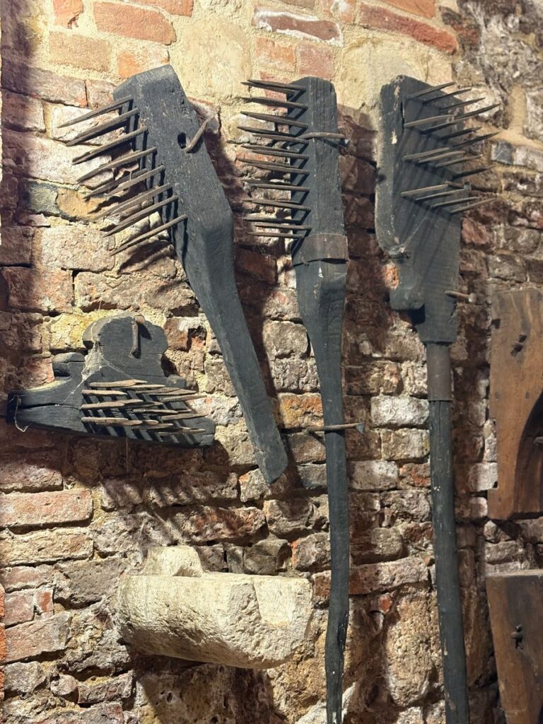 Set out in display cases or not, are hundreds of antique items and implements, all once in use. See the workshops and tools, room where the sheep’s wool was cleaned and processed.