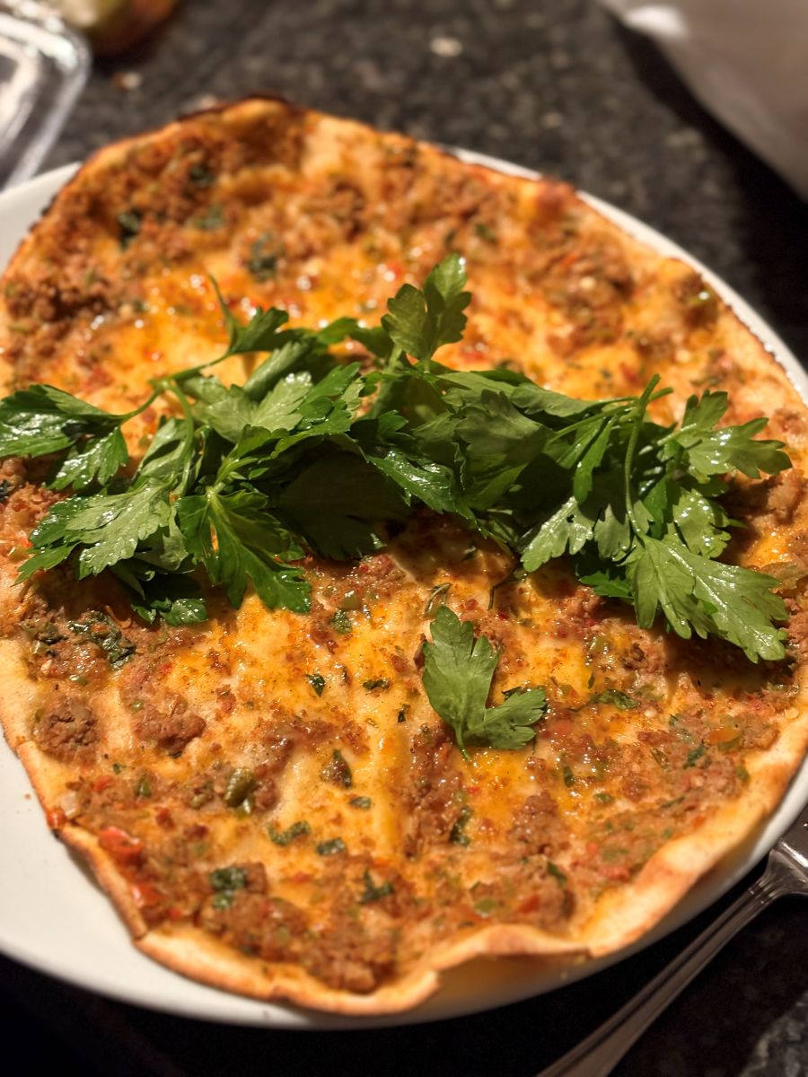 And yet another evening we have picked up a Turkish pizza and my gosh is it ever delicious. A wafer-thin piece of bread that has been cooked in a fire oven is covered with a thin layer of mince and spicy pepper. Just hot enough to be at my height of tolerance. I dip my chewy pieces into hummus and enjoy two whole pizzas to myself. Each one bursting with flavour from the fresh parsley and squeezed lemon.