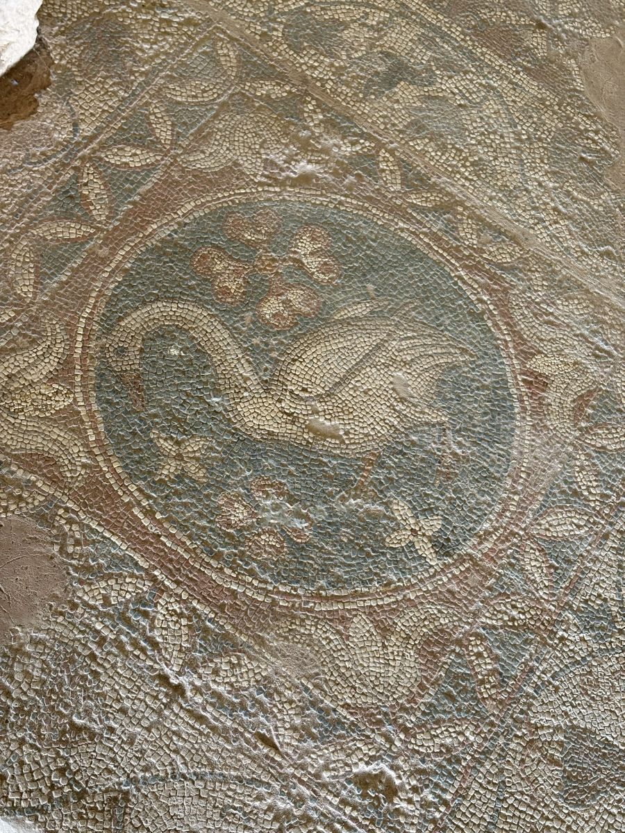 One place I was eager to see if it was possible was this ancient city, close to where I am staying. Soli was an ancient Greek city, but most of what we can see today is from the Roman period. Under a huge canopy, visitors, after paying the €0.50 entrance fee, can walk on a suspended path above a Roman basilica. Here see beautiful mosaics of animals and plant life. The most famous mosaic is of the swan. Unfortunately, it is so dark under the roof, and the floor so dusty, the mosaics have much of their lustre and visibility.
