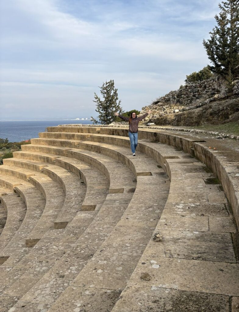 Heading straight up the steep hill from here, I find the Roman theatre. It was carved into the rock around 42 AD and unfortunately has been completely renovated. A wealthy coastal city, Soli traded copper and timbre to Athens in return for metal vessels.