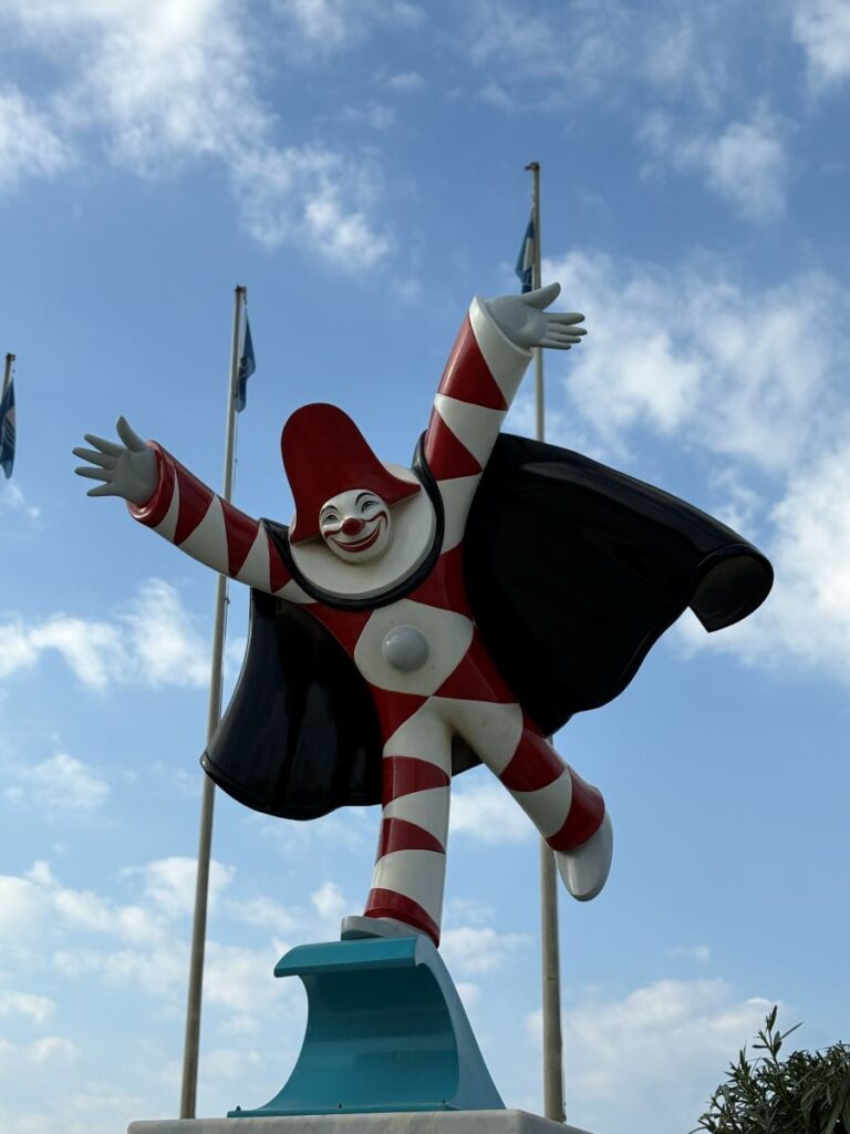 What I was not expecting was the extravagant architecture all along the promenade. Visitors will find a wide area that parallels the beach, stretching for several kilometers. This is the sight of the yearly carnival held in February and there are reminders and advertisements for it everywhere. The local mascot is proudly displayed part way down.