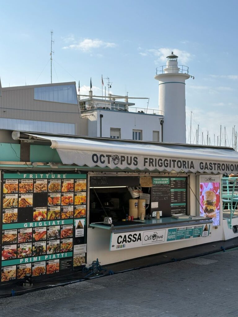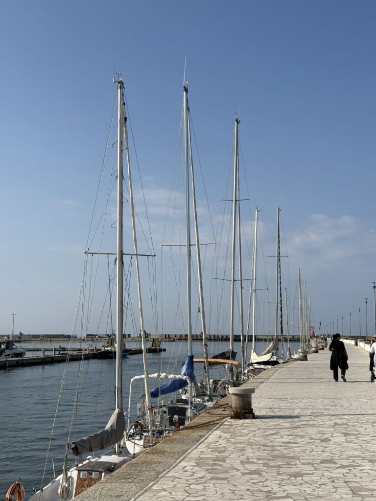 There is quite an extensive harbour at Viareggio. I didn’t walk into the cruise ship port nor did I enter the marina proper. I did however walk down the long pier to see the fishing boats, vendors selling their catch of the day, and local eateries. There are statues on either side and quite a few people out for a picturesque stroll, even this late in the season.