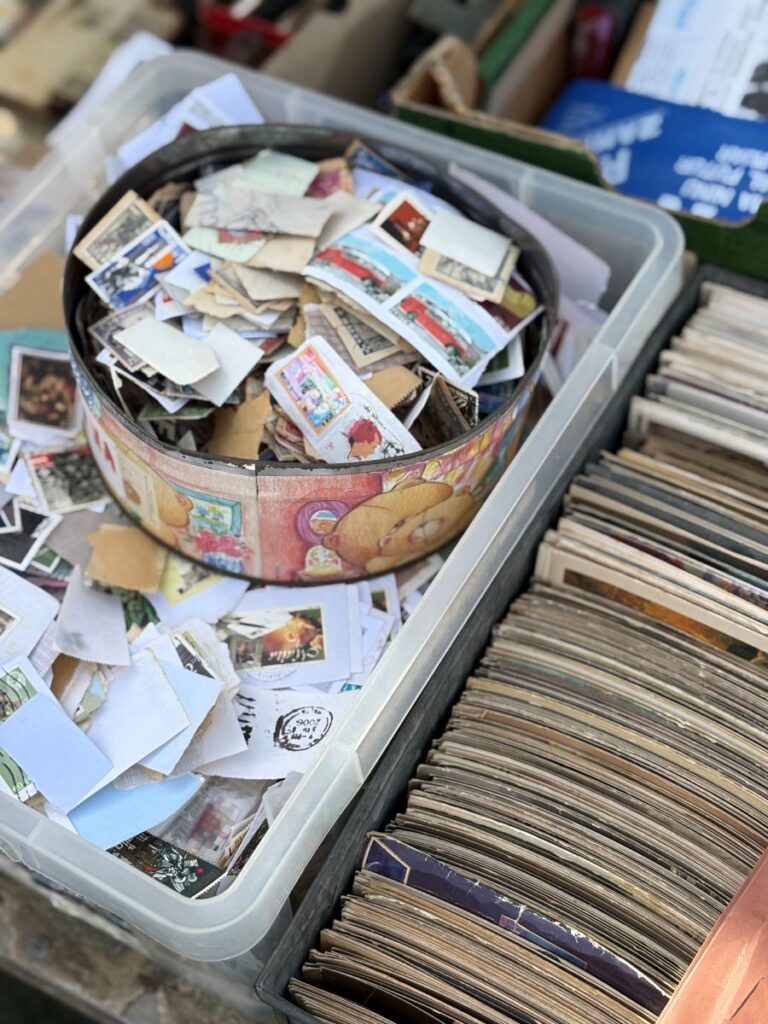One vendor has boxes of his items separated by category. I love the ephemera, old postcards, letters, booklets and papers of every description.