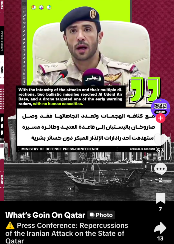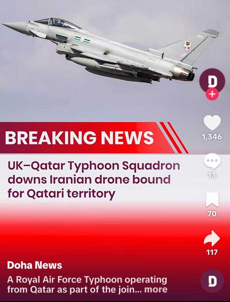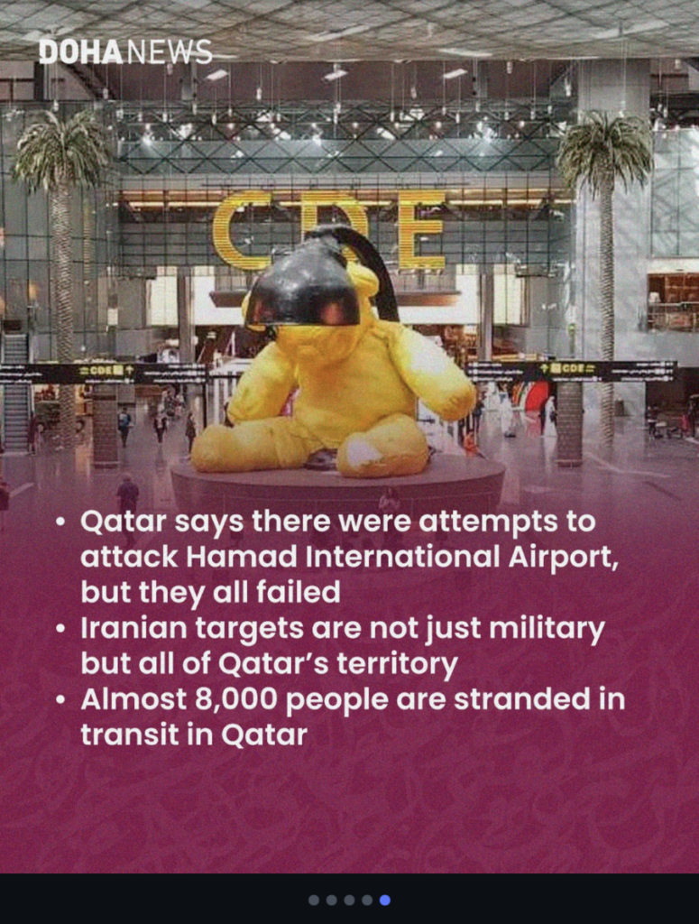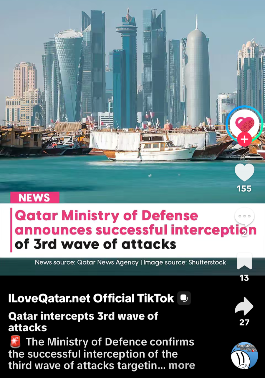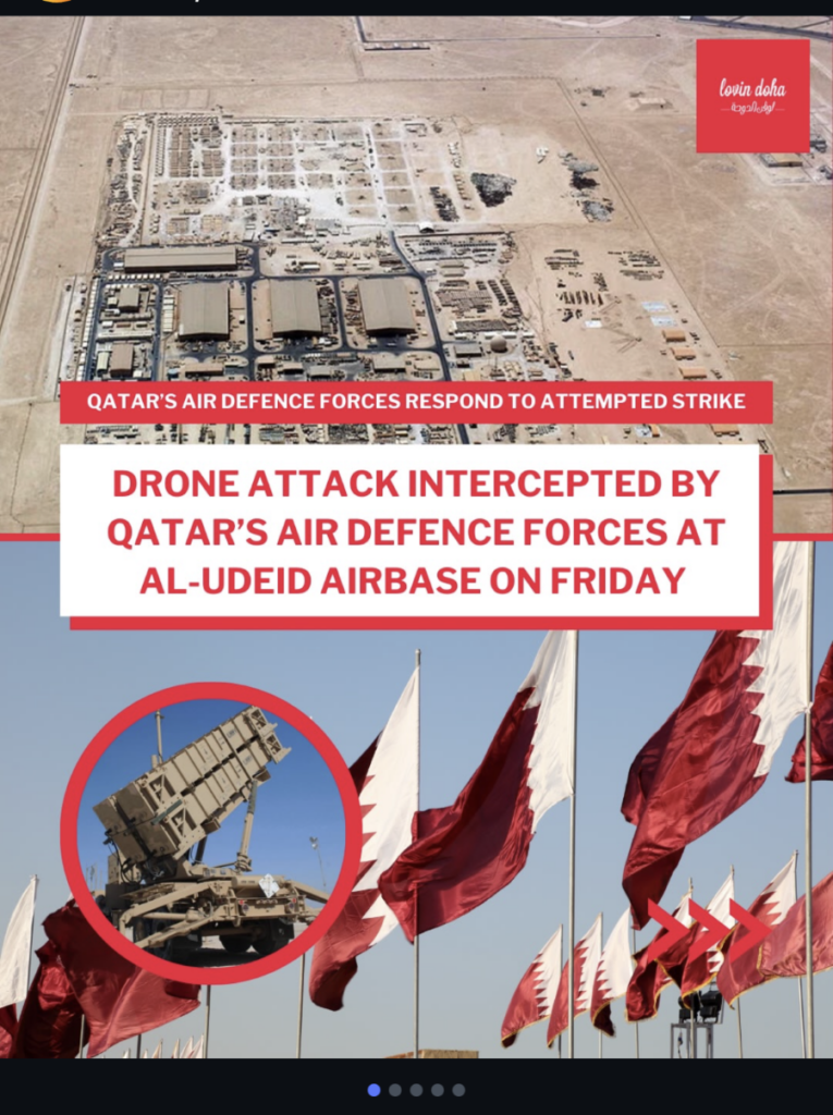 I had just been out for a long walk, mailed my postcards, picked up some groceries and was on my way back to the hotel. I no sooner arrived and began to hear what I thought were bombs. This is what began to cross my social media by 15:12 that day. And at 23:35 I was still hearing ‘bombs’ and have audio recordings standing at my open hotel window. I now know these were incoming ballistic and other missiles being intercepted over the city of Doha.