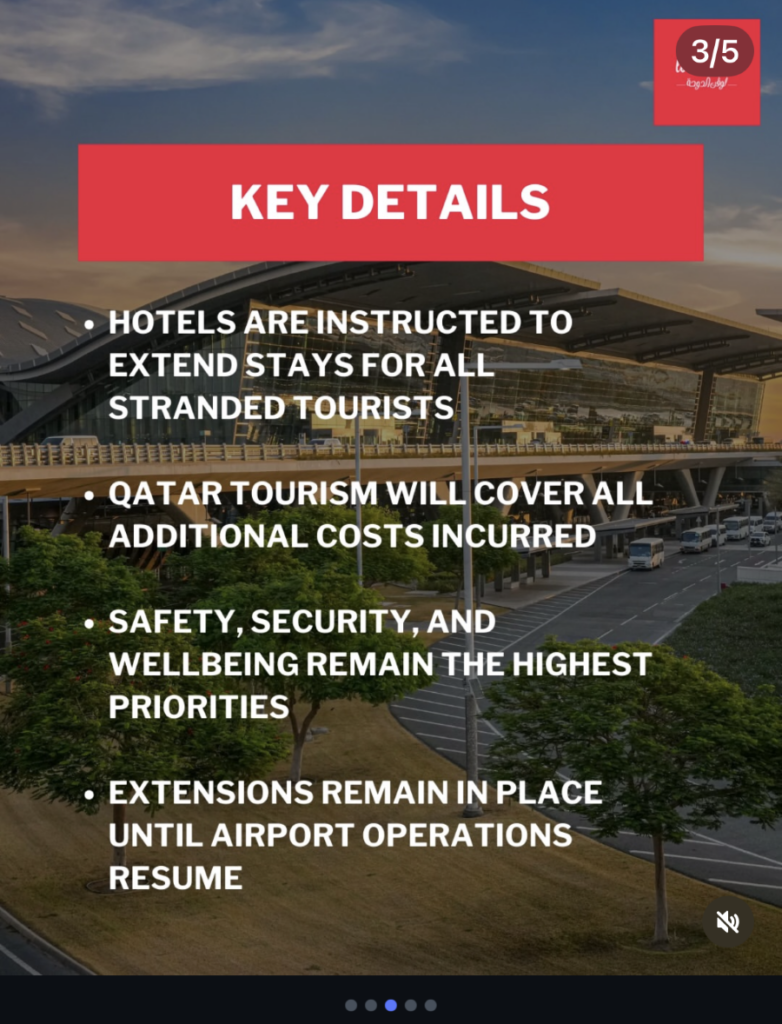 Qatari tourism has now let it be known that they will cover the cost of any tourist who is stranded in the country, paying for their hotel extensions and food consisting of three meals per day. This provides me with such comfort knowing I won’t have to worry about this if I cannot check out and leave on March 5.