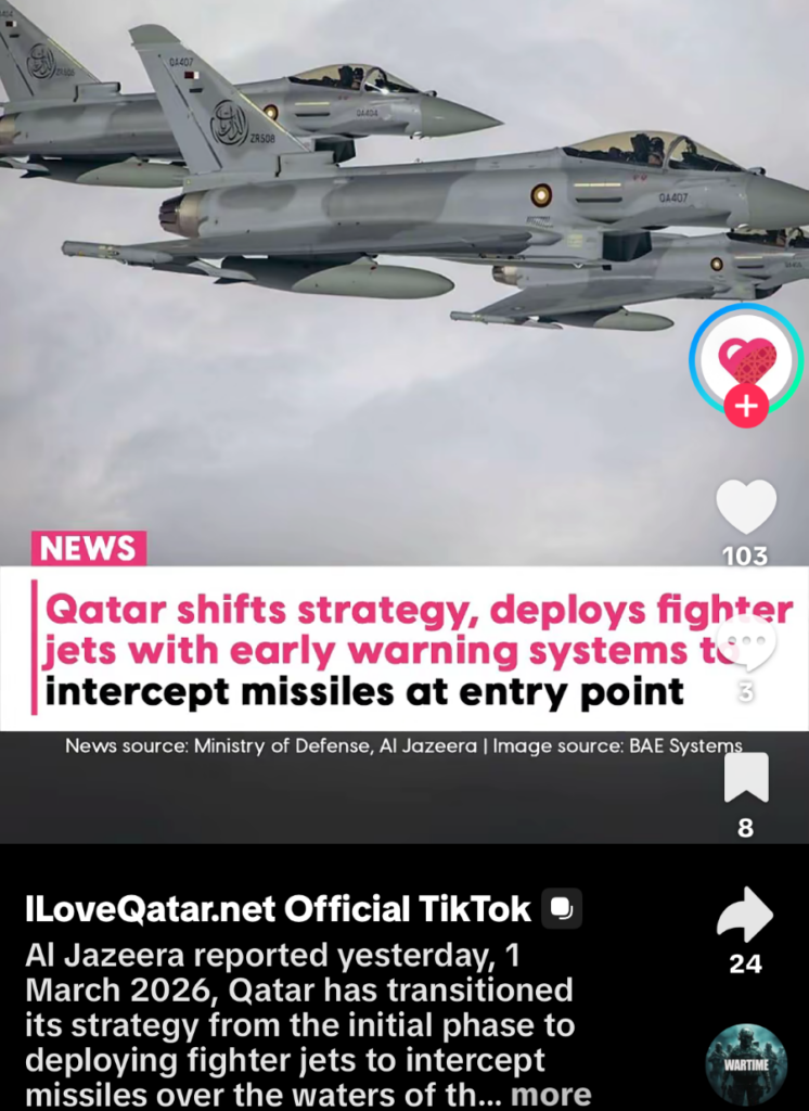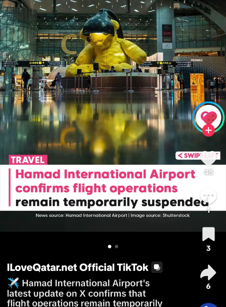 I feel the need to document my experience of the first 9 days of war in Doha Qatar although I struggle with how to do that. I don’t want to dwell on that time period as it causes me immense anxiety. What I have decided to do, is record each day that passed with visual representations of what I saw from my hotel room windows and on the ground. And also, an example of what was crossing my social media feed each and every day. I may briefly describe my feelings, what I was hearing and anything else that is relevant. This is a long one.