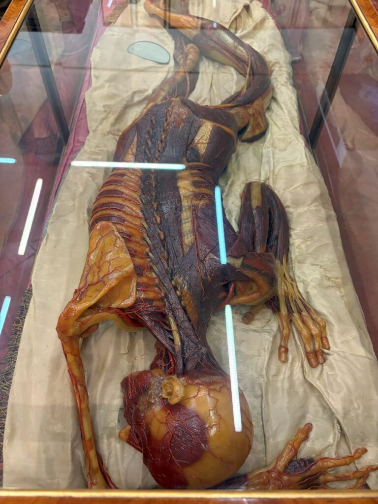 There are hundreds. A full-size ram with its innards splayed open. Cats, dogs, cows, chickens, sharks, a complete study of the sting ray. All of these models are in their original glass cases, created for scientific study and for the public’s curiosity.