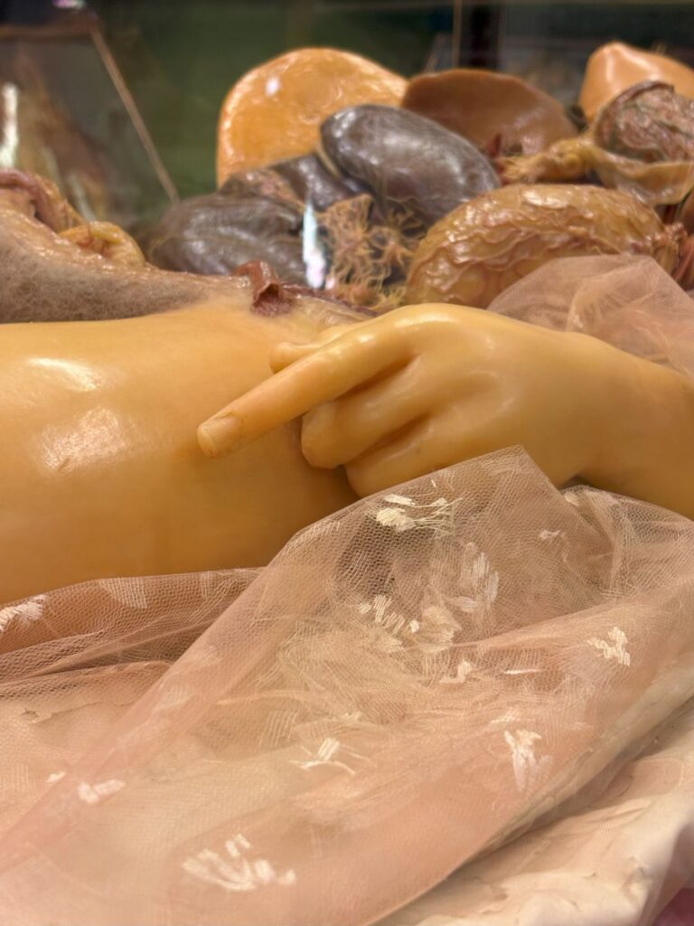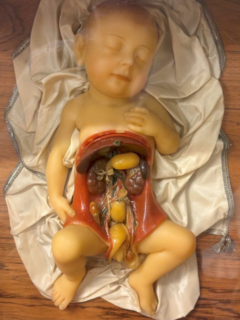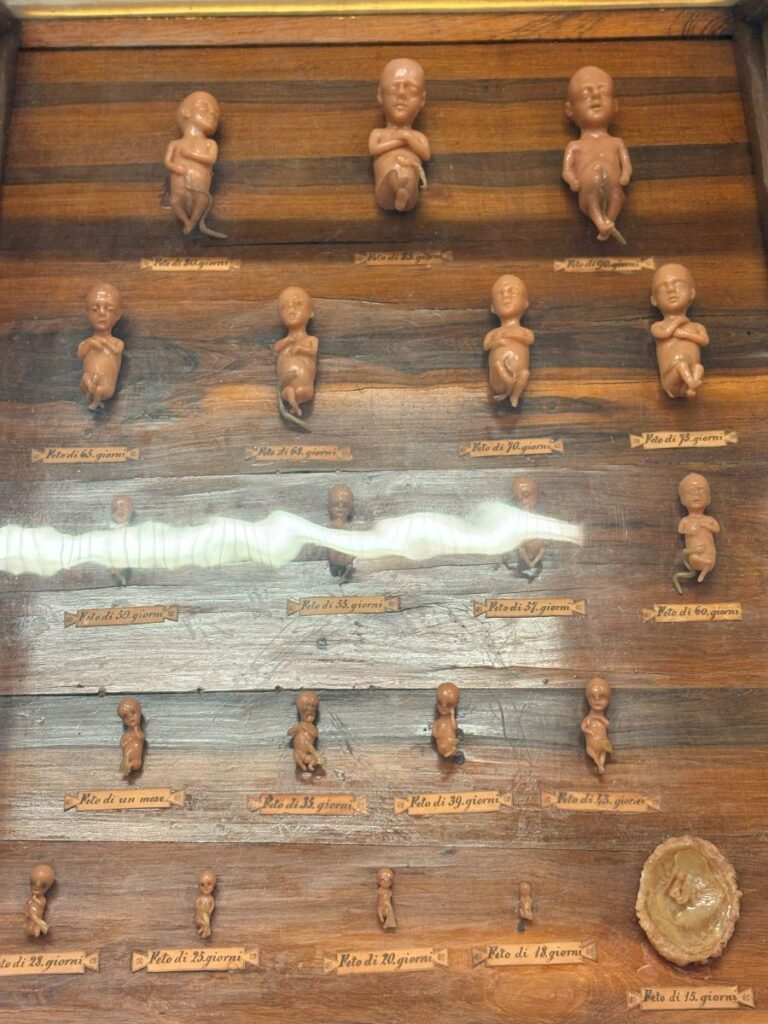 There is one single room that is separate from the others and behind closed doors. It is obstetrics and also contains the models of the sex organs. I was not expecting this room, as I had never read or seen any photos of it. The models of the human belly and the growth of the baby within are astounding. One specifically shows the baby in the amniotic fluid filled sac. Truly a work of art.