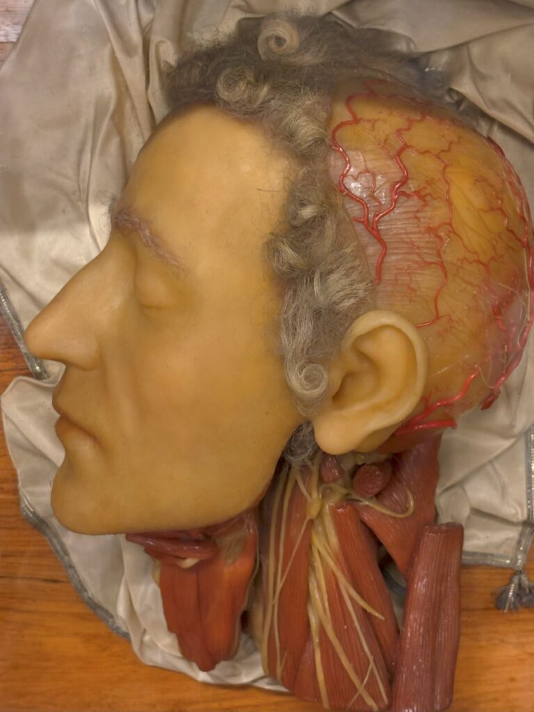 Created by the best Florentine wax artists of the 17th and 18th centuries are 1,400 models of human anatomy. Included in this number are 18 full sized bodies. Every specimen is shown in its original case or casket that contains a tiny drawer at the bottom. The public was able to open this drawer and remove a sheet of paper with illustrations and descriptions of what they were seeing.