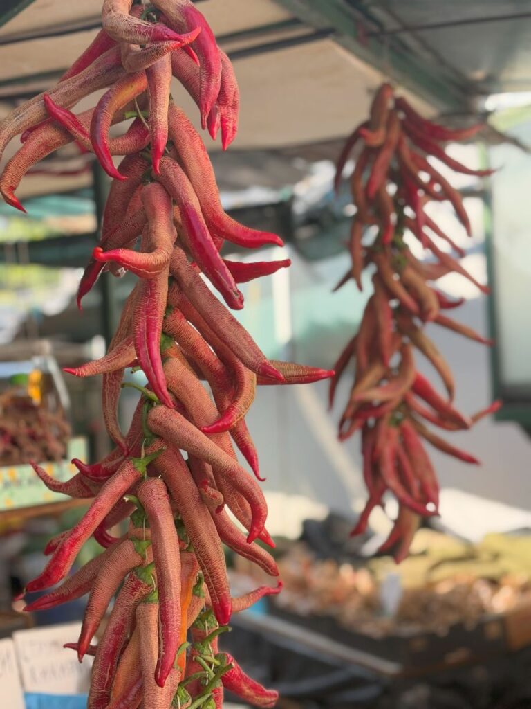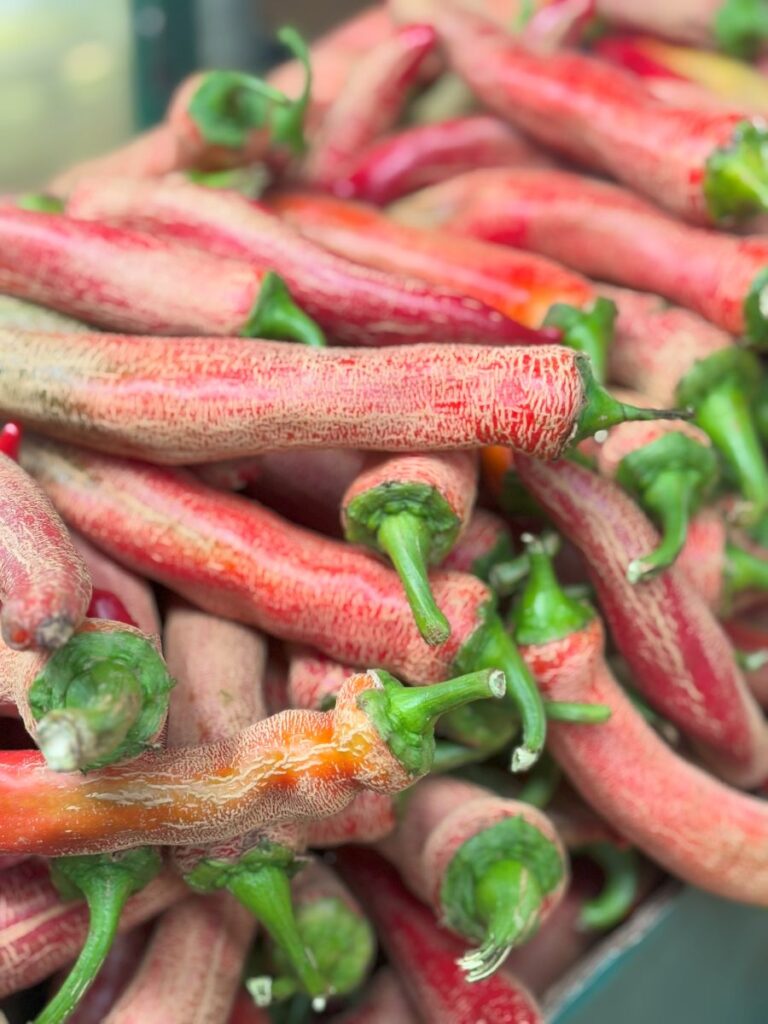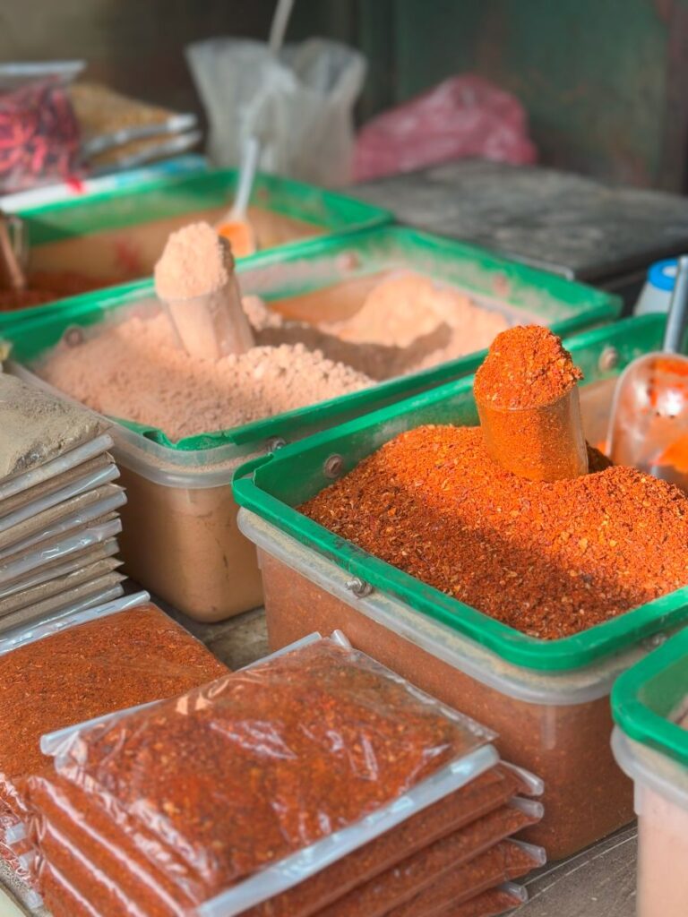 Always on my radar are the spices, nuts, herbs and beans and the Green Market does not disappoint. I see mounds of bright red chili powder, all different varieties too.