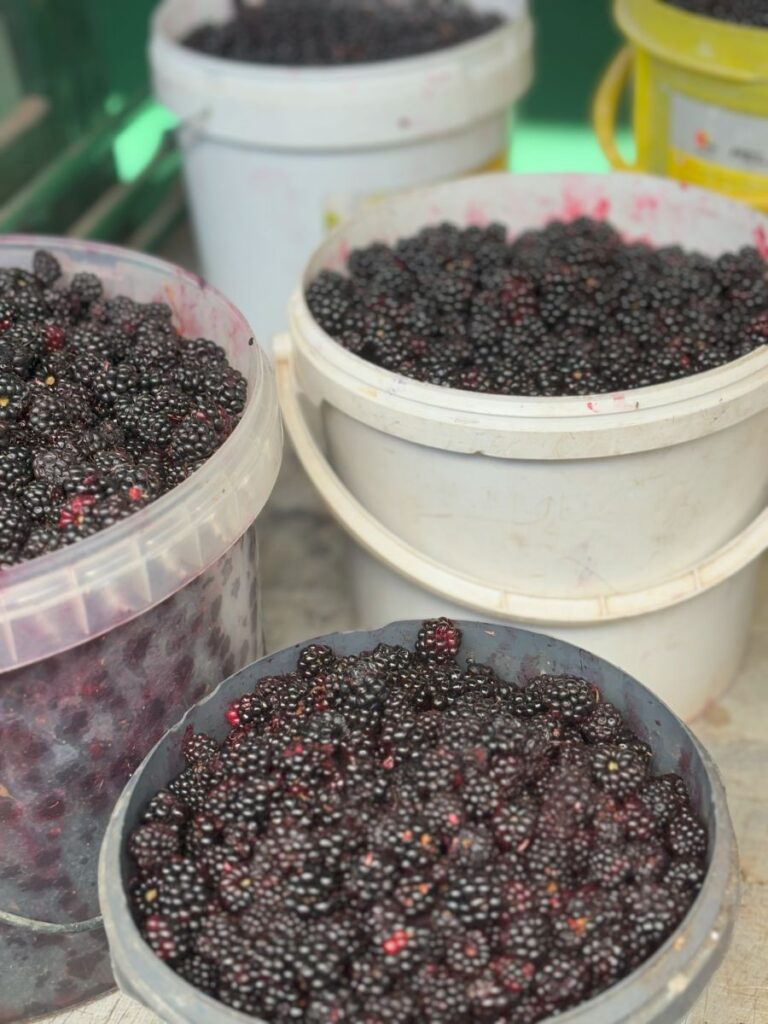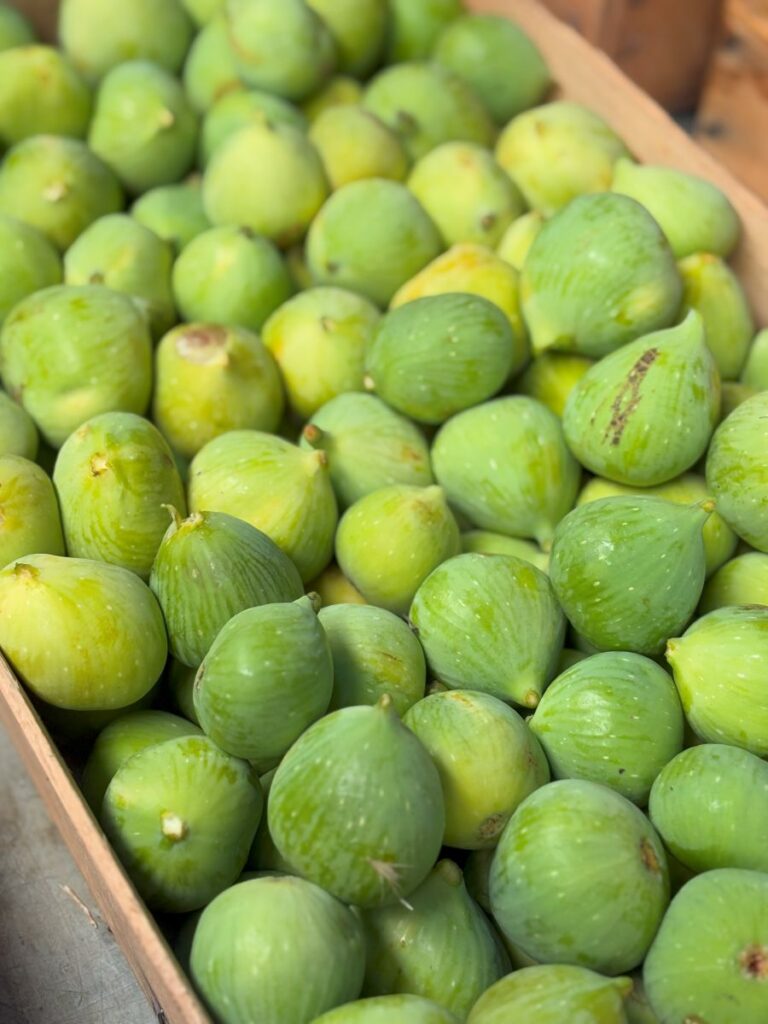 Being summertime, there is a plethora of fresh fruit. I can see that grapes are just beginning to make an appearance. In full swing are nectarines, peaches, berries, figs and prune plums. The largest watermelons I have ever seen and a more local yellow melon, similar to what we would think of as a honeydew in Canada.