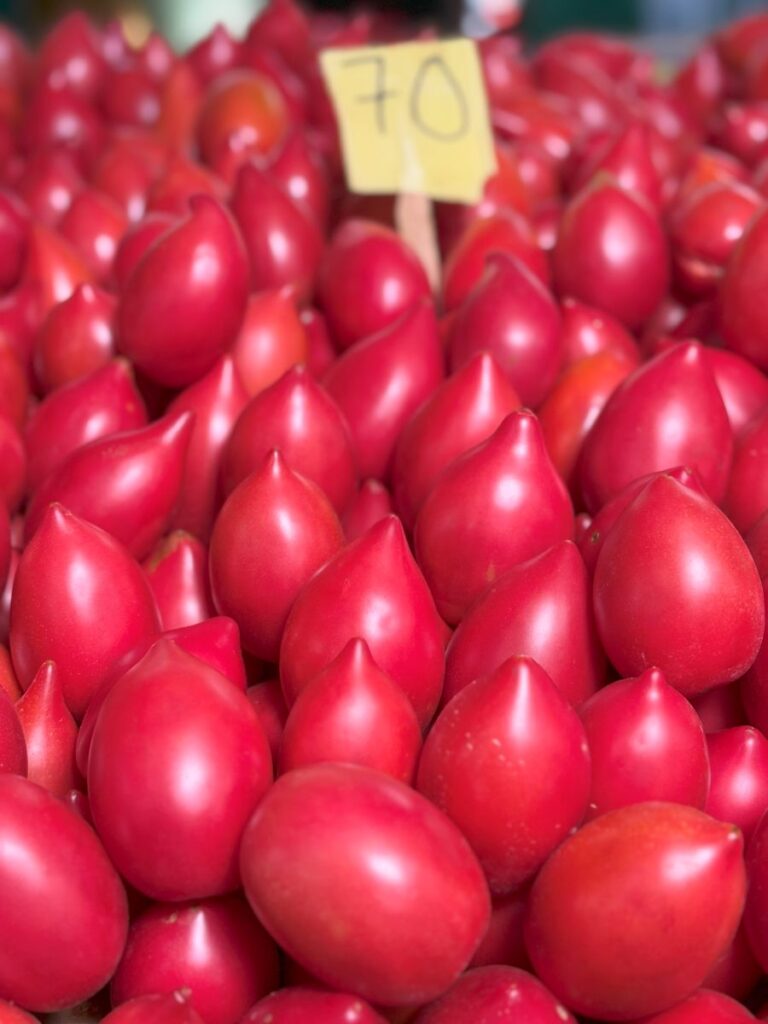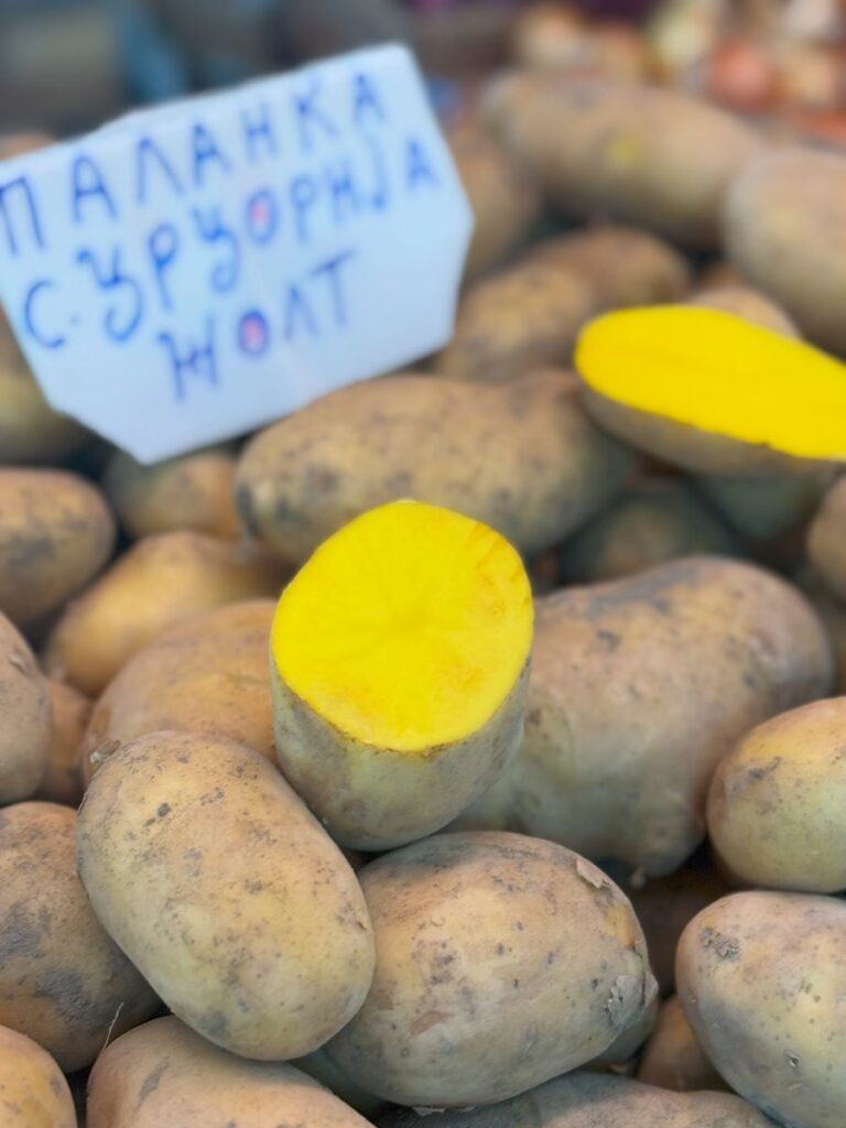 The best part for me at any market I visit in the world, is seeing the bounty of fresh food available. Picked by these local farmers, it’s fascinating to see what is available and what is popular in every destination. What? Yellow potatoes? How interesting!